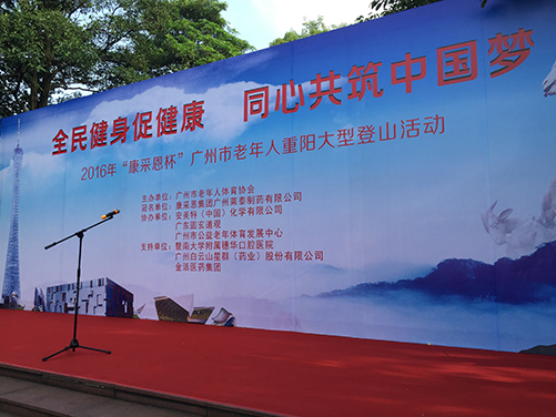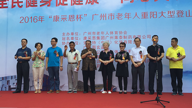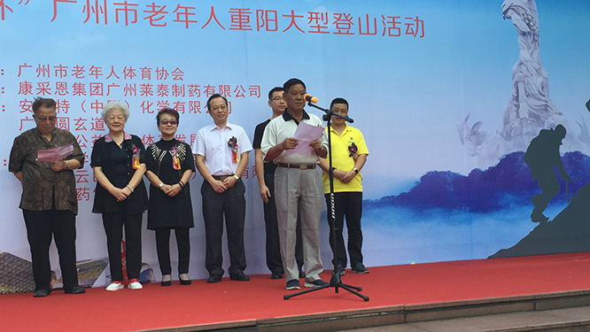 岁岁重阳,今又重阳。今年广州市九九重阳万人登山活动又一次拉开了序幕,今年的主办单位是:广州市老年人体育协会。冠名单位是:康采恩集团广州萊泰制药有限公司。协办单位:安美特(中国)化学有限公司、广州圆玄道馆、广州市公益老年体育发展中心。支持单位:暨南大学附属穗华口腔医院、广州市白云山星群(制药)股份有限公司、金活医药集团。