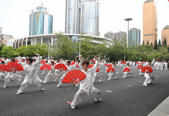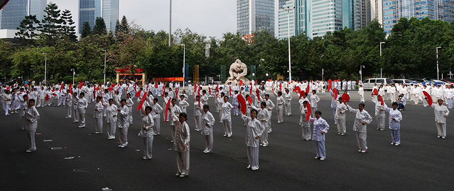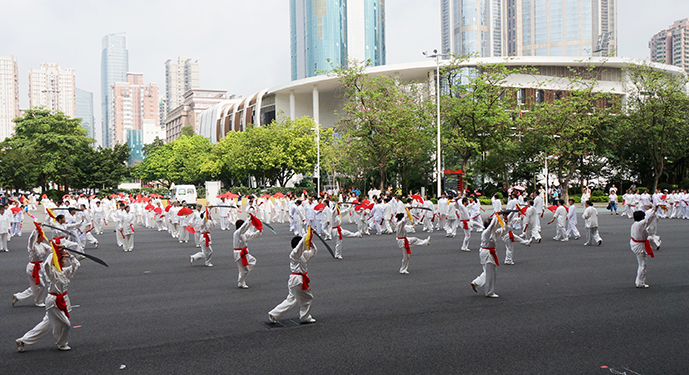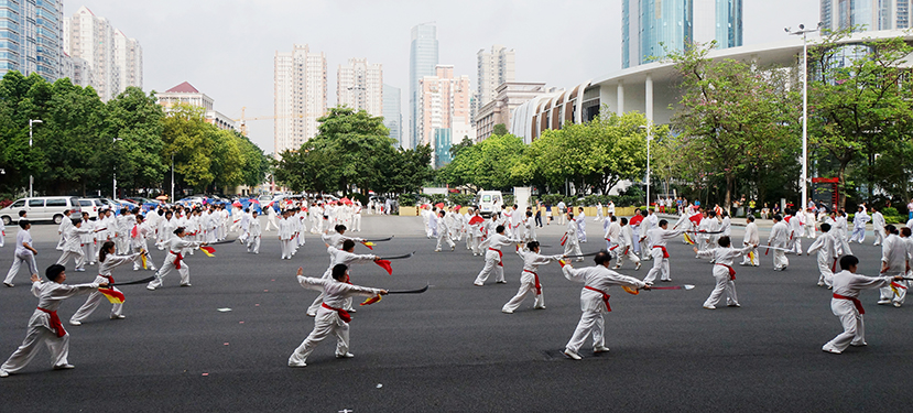 2013年11月5号,在广州天河体育中心举办的广州市太极拳联谊交流活动盛大举行,来自多个市地区的太极拳爱好者,有花都市、清远市、等他们欢聚一堂,展示他们的功夫,这次展示的项目有:太极拳8式、12式、36式、太极拳双扇、太极剑等。此次主办单位是:广州中老年文化艺术协会、广州市公益老年体育发展中心。