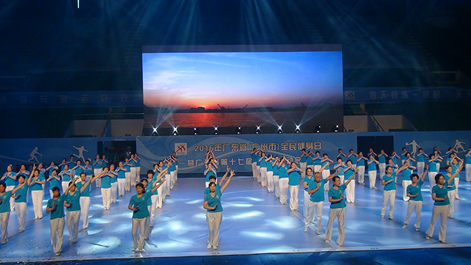 2016年8月8日广东省(广州市)全民健身日广东省第十七届体育节活动启动仪式在天河体育馆举行,此次活动主办单位是:广州市体育局、广州市公益老年体育发展中心联合举办。