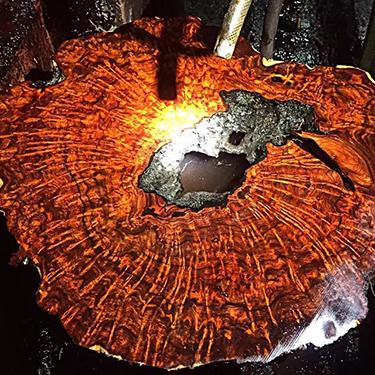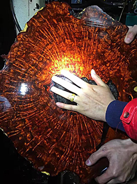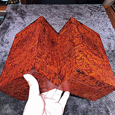 去海南收购黄花梨原木的老王,在市场上碰到了两块外表全是爆满瘿子的紫檀瘤疤料,由于老王自己的资金全换成了黄花梨木,只能找朋友借了100万买了并且现场切开。切开后的瞬间,惊呆了在场的所有人!居然是底色干净的鸡血红爆满葡萄瘿,而且油性也非常好,瞬间就让料子翻倍升值,围观的群众都改口喊老王为王总。