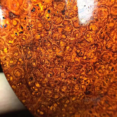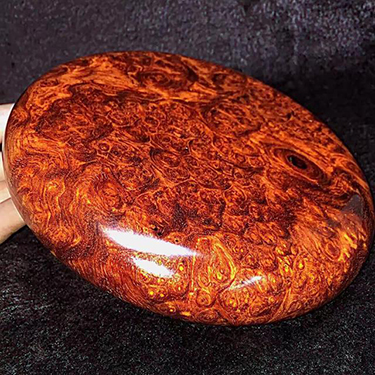 瘤疤,科学一点讲叫“愈伤组织”,是树木在受伤后,细胞无性繁殖形成的一种自我保护,古代称之为瘿木、瘿结。瘿木亦称影木。系指木质纹理特征,并不专指某一种木材或是单指一种特征,而是泛指所有长有瘤疤或因病变而形成的奇异特征,但瘤疤是在瘿木中病变最为严重,变现最为明显的一种,瘤疤多生在树腰或树根处,是树木病态增生的结果,是一种天然的病态美。紫檀瘤疤因相对较少出现,而且面积较小而更为难得,期中明显,均匀的又被称作“葡萄瘿”,被归为AAAA+级。