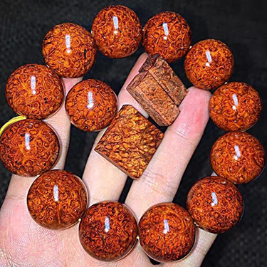 现如今玩小叶紫檀的朋友越爱越多,刚开始大家都会试水玩玩入门级的小叶紫檀,随便品味慢慢变高,便想要追求品质更好价值更高的小叶紫檀手串,比如金星,鱼鳞纹,水波纹,瘿子纹等,这些都是小叶紫檀中难得的佳品。一条满瘤的手串带出去都能让旁人为之侧目,因为市场上太少,甚至比金星手串稀有,紫檀瘿木制作的工艺品或手珠目前市场价格不规范,太多是漫天要价,因为商家都知道这是一种一旦卖掉就很难再找到的东西,购买紫檀瘿木的人也存在这样的消费心理,这使得紫檀瘿木的成交价格屡屡惊人。