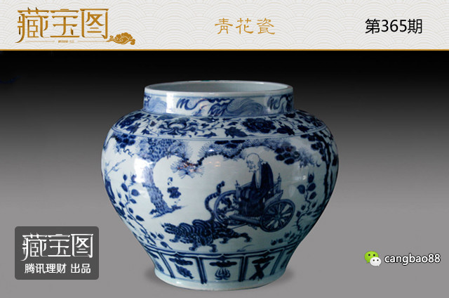 【鬼谷子下山元青花大罐】是全球仅存的八件元青花人物故事瓷之一,属国家一级文物。瓷罐高27.5cm、口径21.5cm、腹径34.5cm、足径20.6cm。绘有“鬼谷下山”图、传神生动、画工细腻、堪称元青花绝世珍品。该器物于2005年7月12日伦敦佳士得举行的“中国陶瓷、工艺精品及外销工艺品”拍卖会上拍出约人民币2.3亿,创下了当时中国艺术品在世界上的最高拍卖纪录。