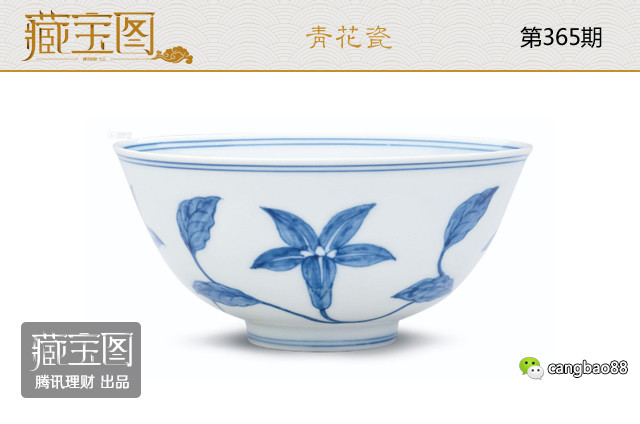 【明成化 青花缠枝秋葵纹宫盌】淡蓝宜漫抹,浓青善勒骨。外壁巧绘秋葵连枝、蜿蜒曲回、四美竞妍、柔瓣散舒、幽芳怒绽。内壁环饰连枝秋葵、然姿影稍异、更添意趣。盌沿里外、足上各缀弦线二道。通体罩施釉料、透亮若脂、润泽如玉,器底署青花二行六字双圈楷款。2013香港苏富比秋拍,重要中国瓷器及工艺品专场,这件明成化青花缠枝秋葵纹宫盌6500万港元起拍,最终以1.25亿港元落槌,加上佣金1.4亿港元成交。