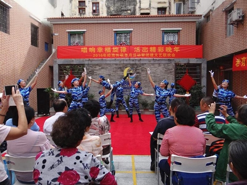 10月13日上午,荔湾区岭南街家庭综合服务中心举办了“唱响幸福旋律,活出精彩晚年”——2016年荔湾区敬老月活动暨团建文艺联欢会,这次文艺联欢会特别邀请了六支文艺团队为大家表演15个节目,有合唱、舞蹈、小品、拳术表演、模特表演,还有民乐演奏。社区长者、各表演团队及领导、工作人员合约200人参加了此次活动。荔湾区积极为辖内孤寡、独居、空巢、长期患病、困难长者送上节日慰问,使阳光能够精彩照耀荔湾每一个角落。(荔湾区文明办,通讯员:陈碧云,图片来源:逢源街)