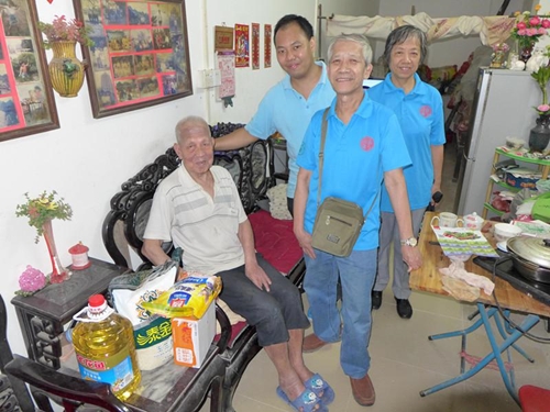 图:义工们为长者送上节日慰问品和祝福。图片来源:逢源街