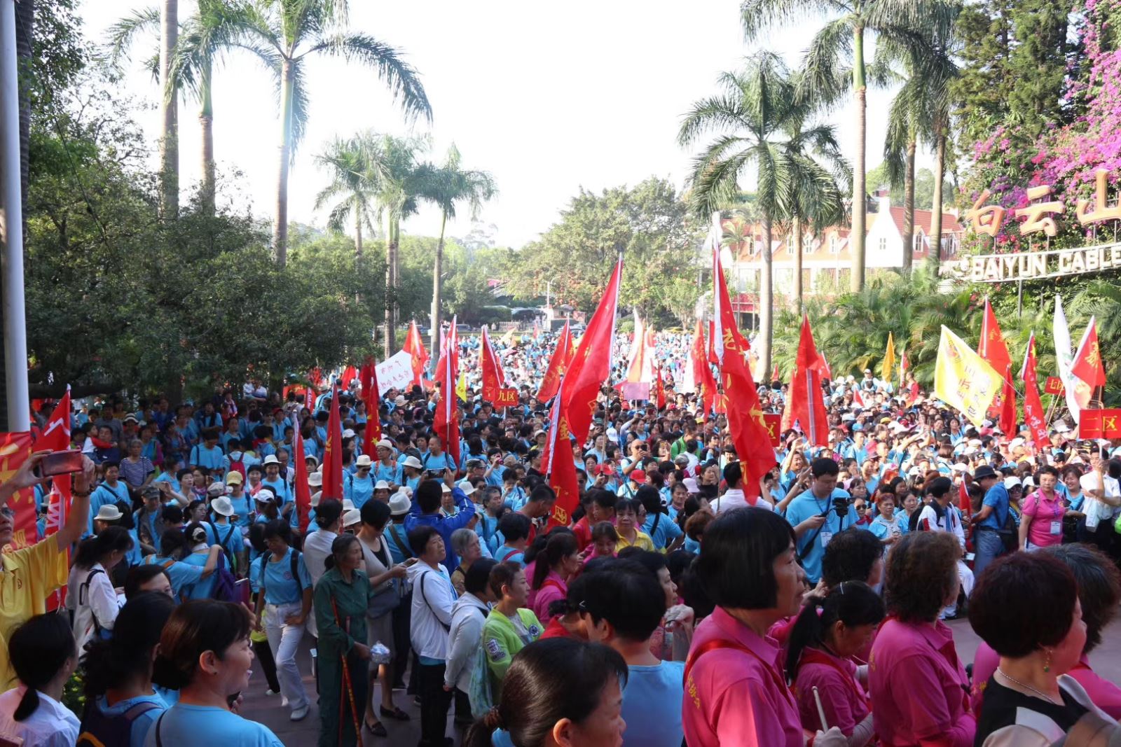 2019年广州市每年一年的万人登山活动开始了,今年是很特别的一年,因为今年人员是以往的两倍所以热闹起来要比以往更加欢快,我们每个队员穿着整齐的制服,哼着欢快的小曲,踏上了美丽的山峰,在此之前我们广州中老年文化艺术协会,广州市中老年文化体育协会,广州市公益老年体育发展中心为大家发放免费的登山服,从早上八点到下午5点半特别感谢我们的工作人员你们是最棒的,你们是最美的!