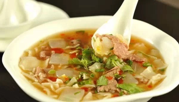 这是青海的一道家常菜,面片不是擀出来的,而是揪出来的,捏扁了之后直接投到沸水里。面包君脑补了一下,居然出现了《爸爸去哪儿》第一季王岳伦用手甩面疙瘩的场景,顿时木有食欲了。